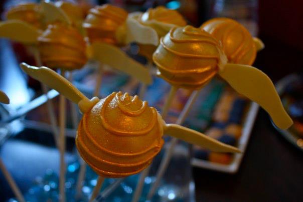 Golden snitch cake pops (I know I know, too much cake. But I couldn’t let the scraps from the Hogwards Express cake go to waste).