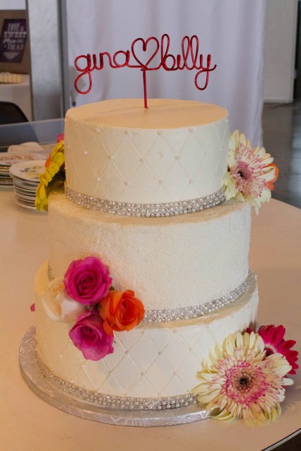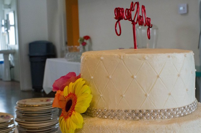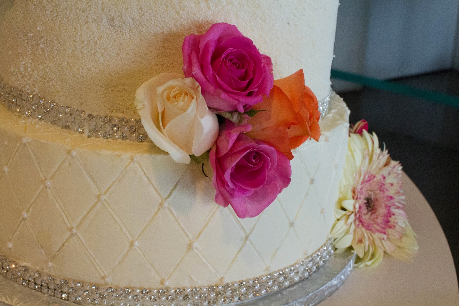 This cake was assembled on-site. I put each tier in its own box and loaded them up into the trunk. I had a “cake kit” with the trim, scissors, paper towels, extra sugar pearls, loaded pastry bags, and everything else I could possibly see myself needing crammed into my trunk. Then, I drove very, very slowly.