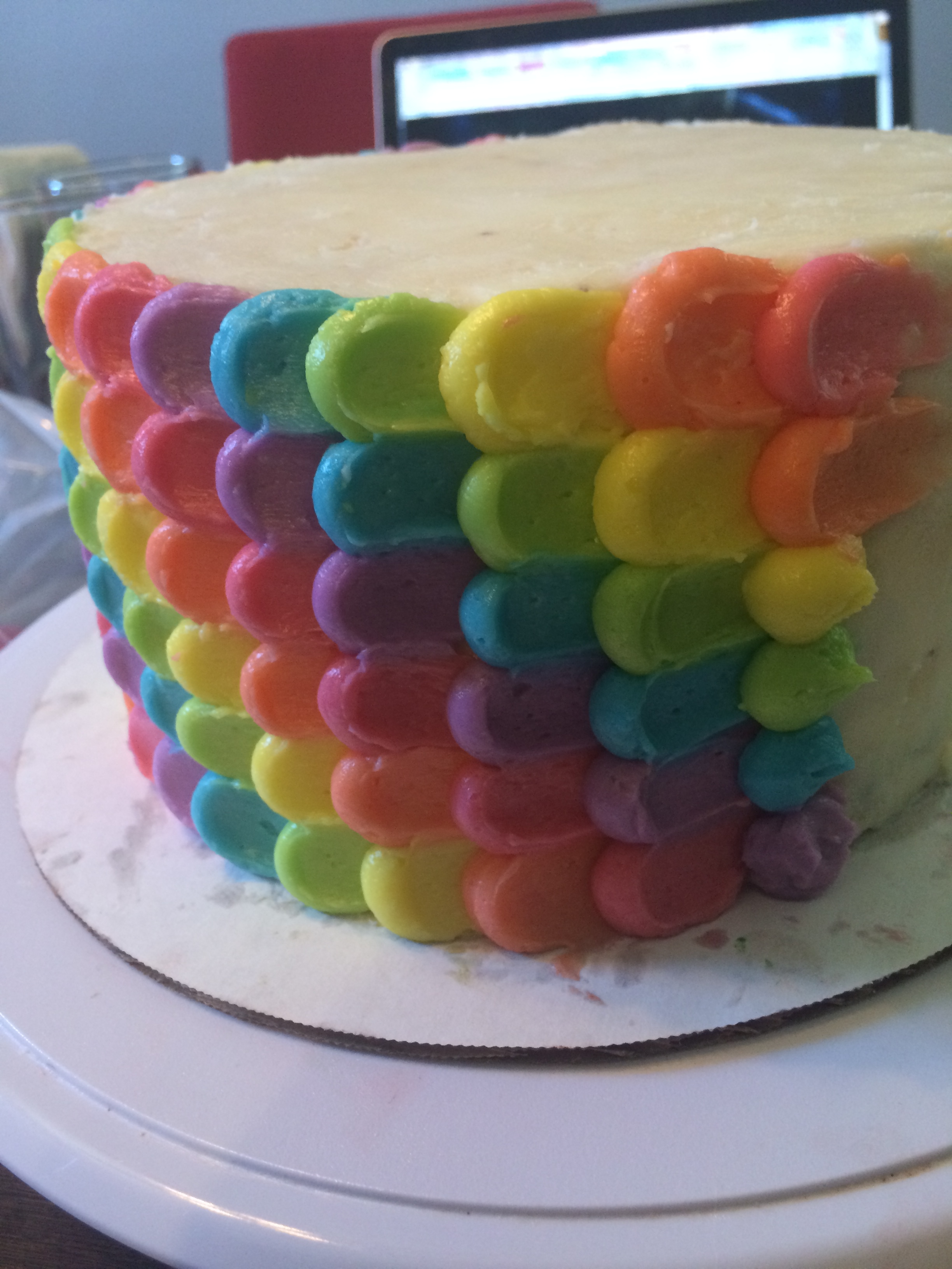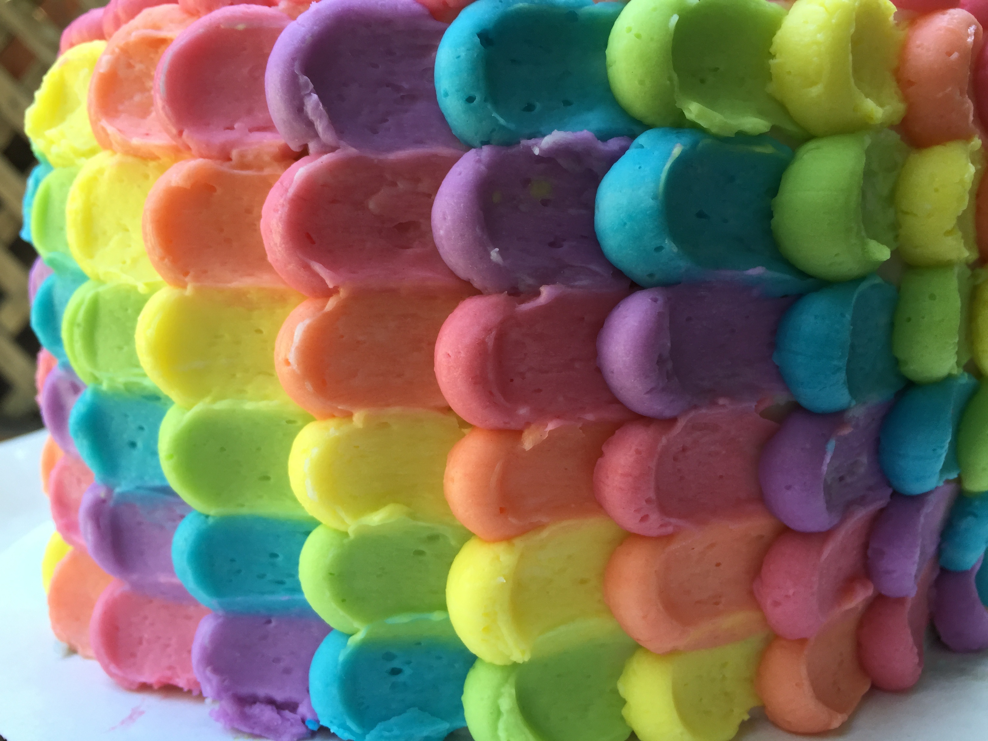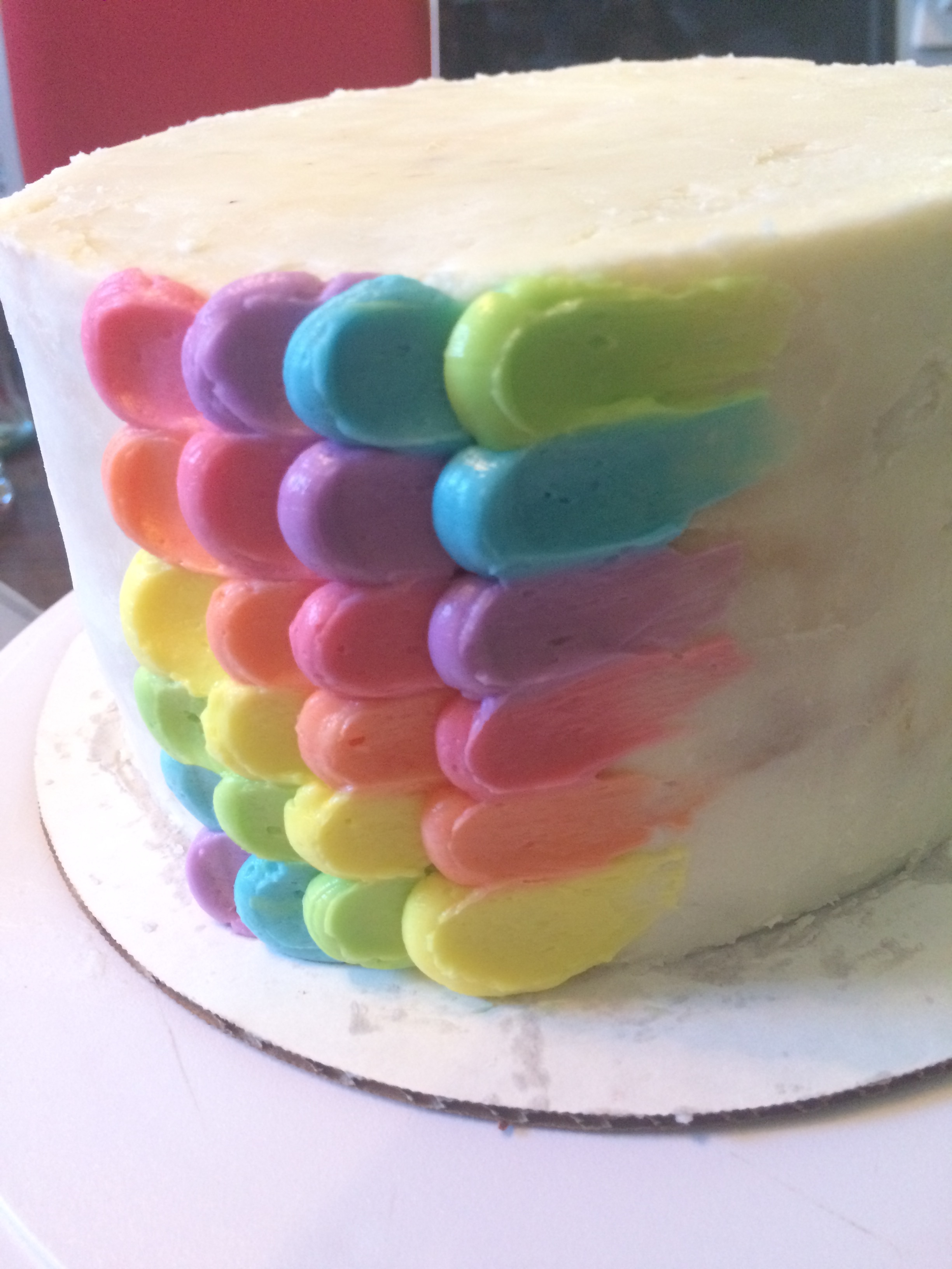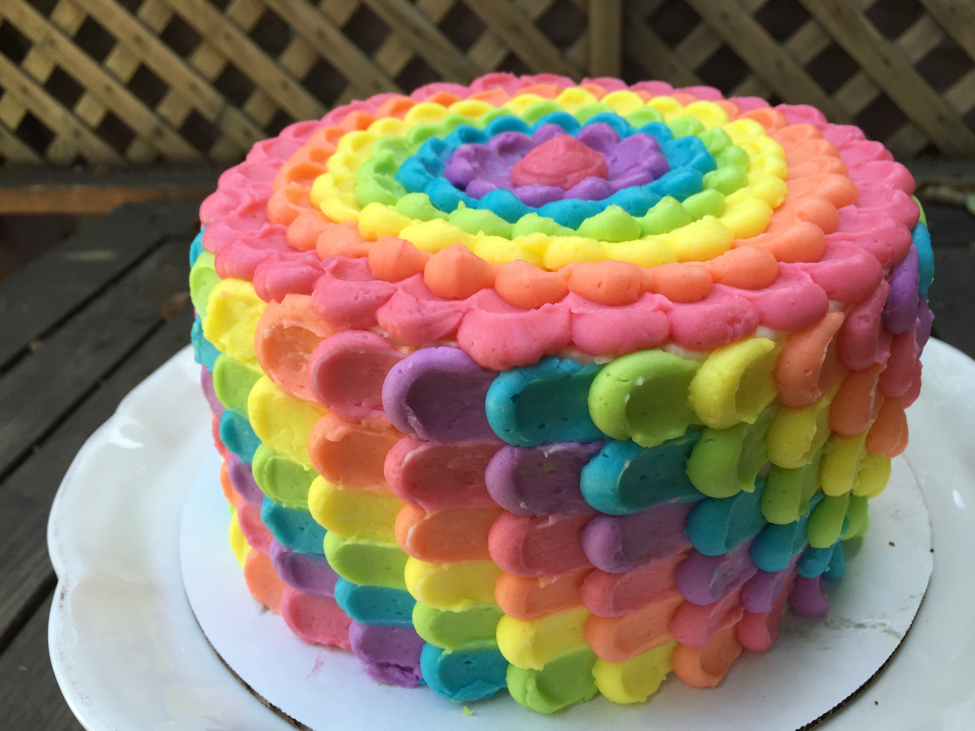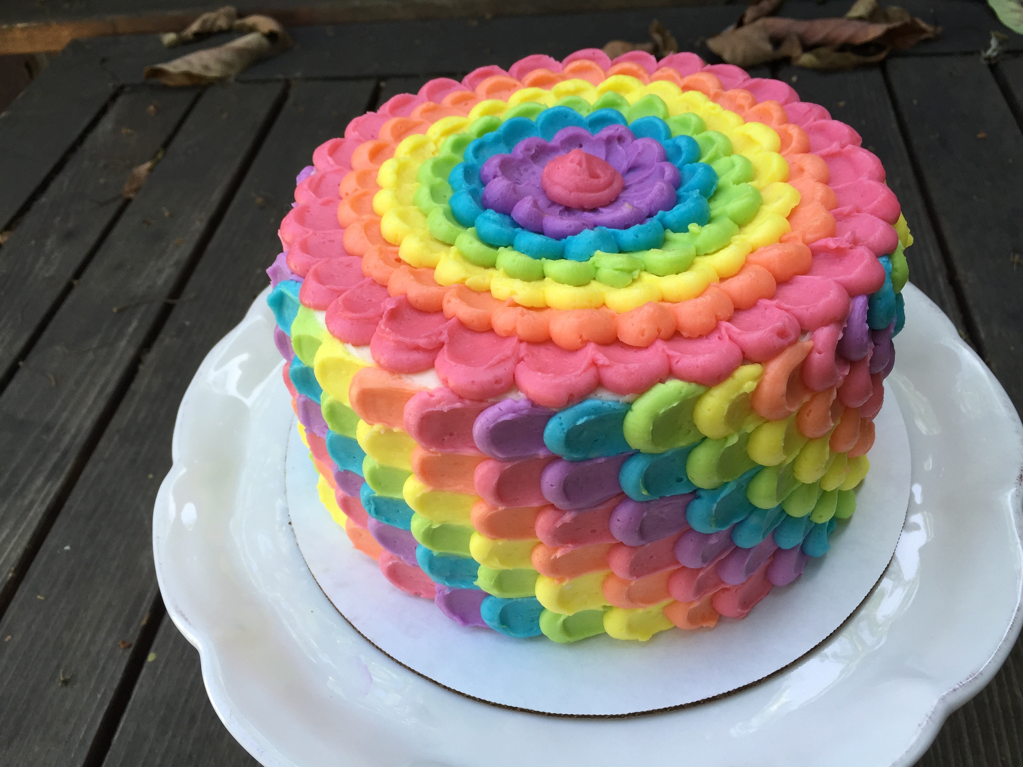 This cake was for a birthday, but think of the possibilities different color combos could mean! Pink and blue for a gender reveal or baby shower event, all white for a wedding, red/white/blue for the 4th of July, or even in all pastels for any occasion.