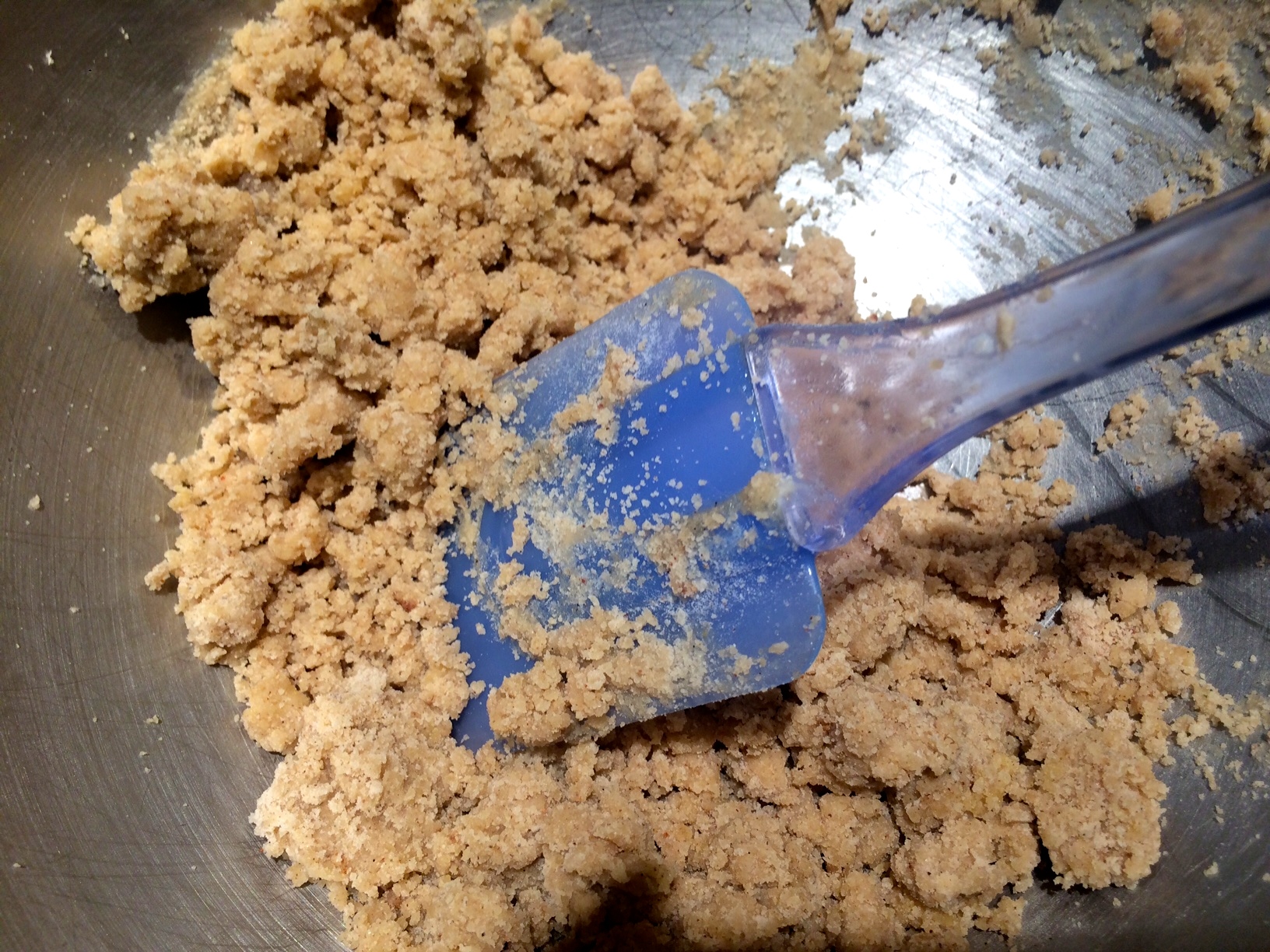 Making the crumble topping and crust. Love the one-bowl technique!