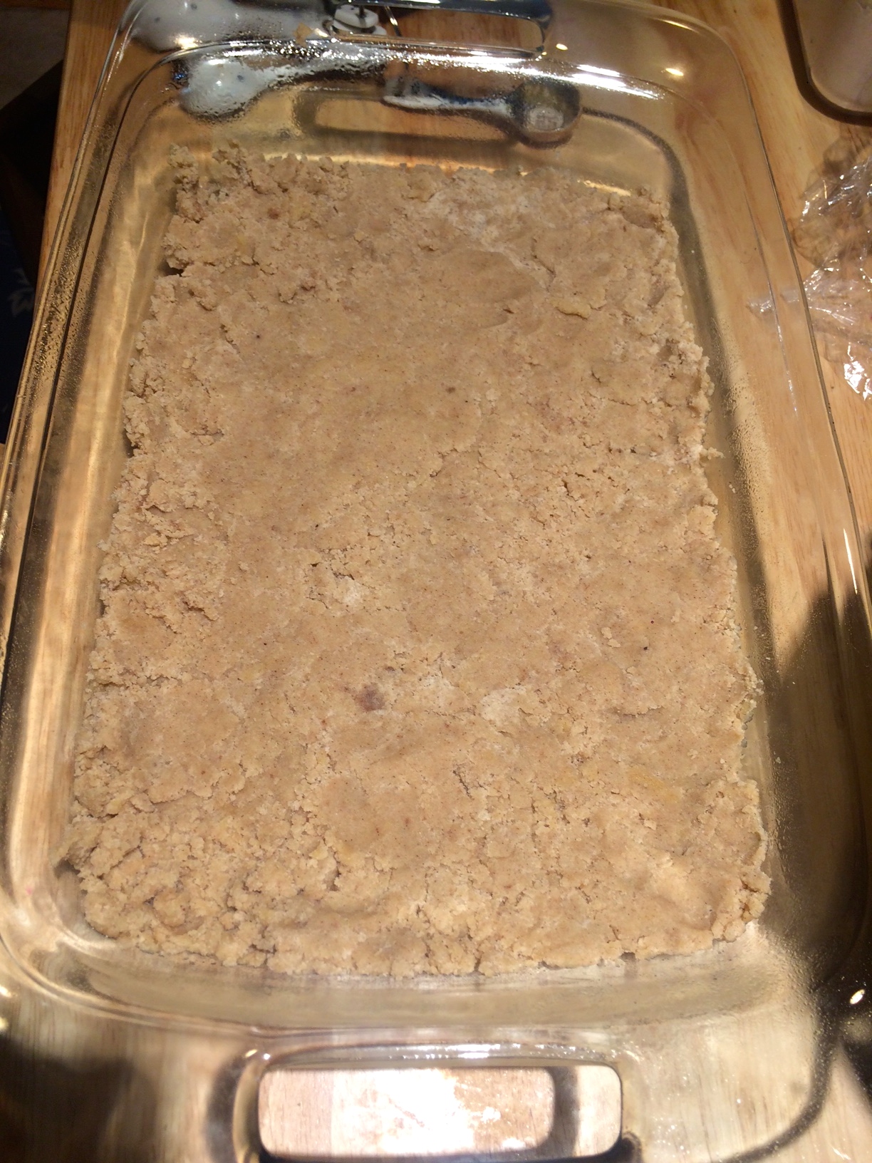 Pressed crust into pan, ready for baking.