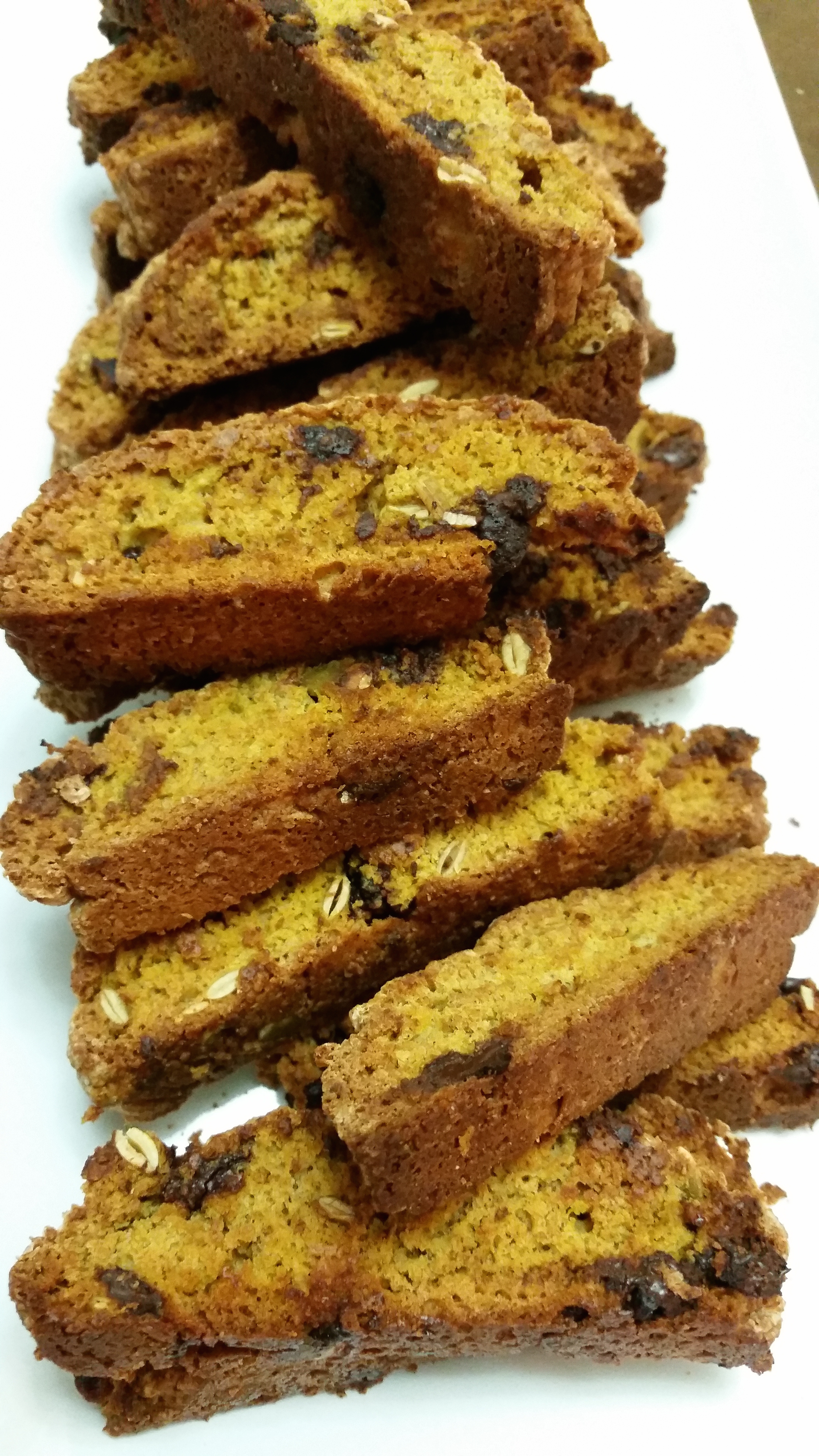 These tasty pumpkin biscotti are the quintessential fall treat. Perfect for dipping into a nice cup of coffee or cocoa, the cookies are lightly sweetened, super crunchy, faintly pumpkin-like, and packed with flavor.
