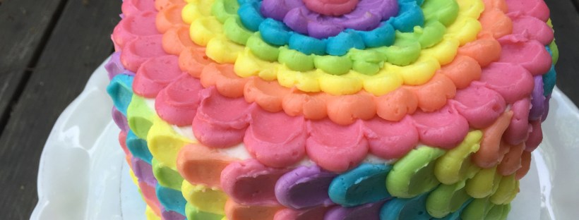I love this cake. And, I’m going to show you how to make it. Alright, take your favorite flavor cake and bake it up (I used my favorite chocolate cake recipe for this cake here). Pick out a nice vanilla frosting. Swiss meringue buttercream is always nice and smooth, but here I used a creamy, flour-based frosting for extra richness.