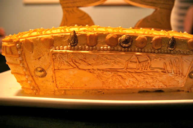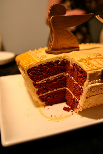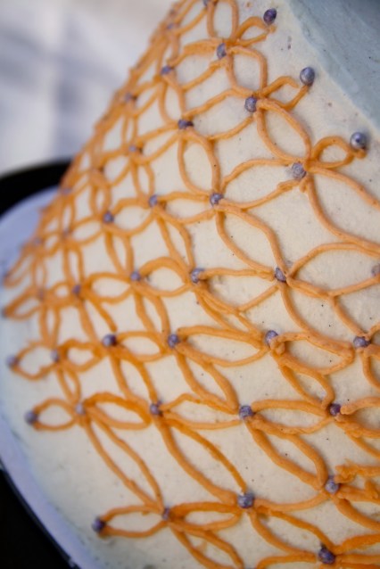Then it was time to cover it in buttercream. I made sure to use the frosting to help emphasize my carving and build up on areas where I was a bit overzealous with the knife. Yes, big mess. What else is new?