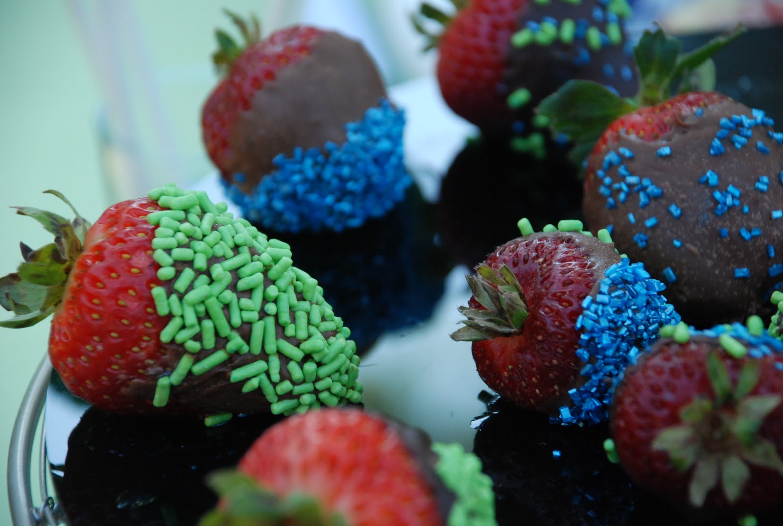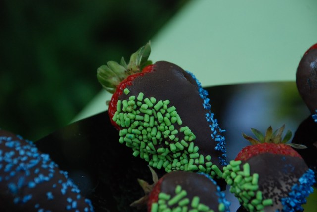 Since we asked the guests to dress up in the spirit of the event, I thought it would be appropriate to make sure the strawberries were similarly attired.