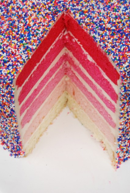 50 vanilla cupcakes dipped in sprinkles and topped with creamy vanilla frosting. The cakes themselves were orange and if you look carefully you can see a bit of color peeking out from under the sprinkles.