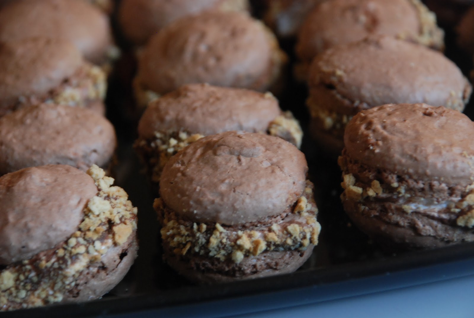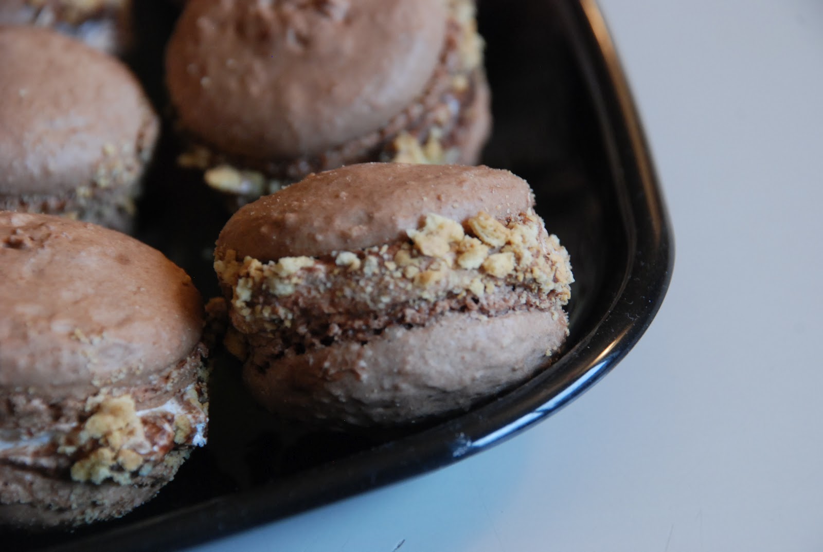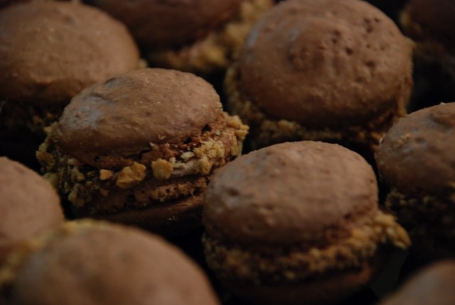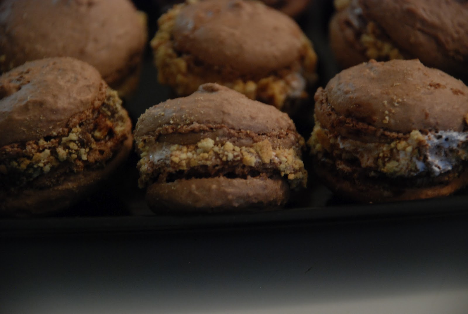 Yes, s’mores macarons! Chocolate shells, fluff/ganache filling, and graham cracker crumbs. The only thing that would have made them better is to make the marshmallow filling from scratch and attack it with a blowtorch before sandwiching them to give it that campfire taste. These kept in the fridge for well over a week and they were so yummy. Very messy because the filling oozed all over until they had some fridge time to set, but it was worth it.