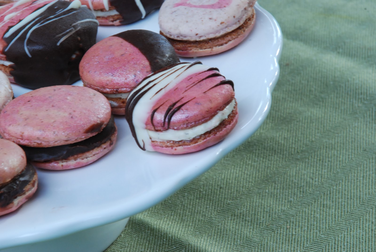 Chocolate Dipped Strawberry Cheesecake Macarons