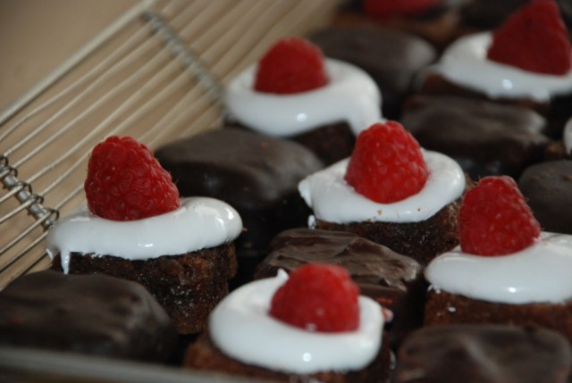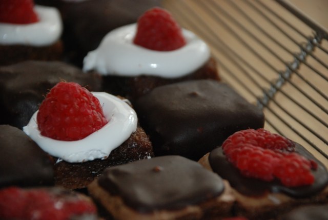 The little squares looked like perfectly delicious gems. Next time, I think I’ll try a light glaze on top of the berries to make them really shine. Chocolatey, fruity, sweet and chewy.