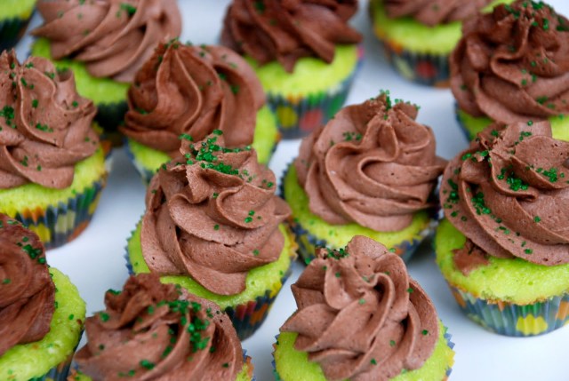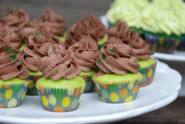And some vanilla bean green (no, not vanilla green bean) cupcakes with chocolate frosting.