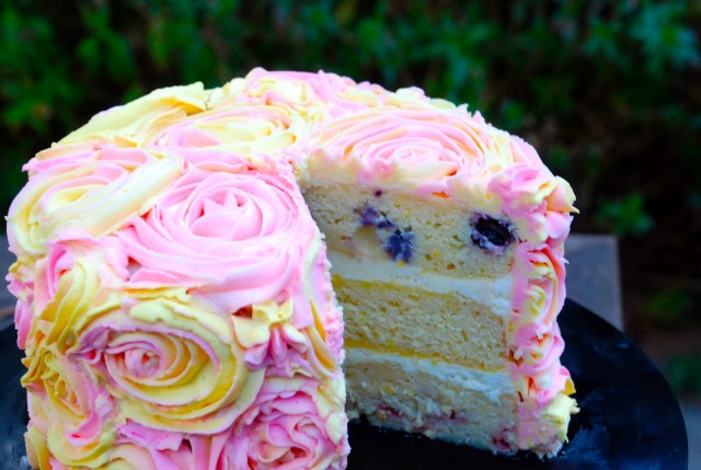 Each layer is filled with this incredible vanilla frosting and super tart lemon curd.