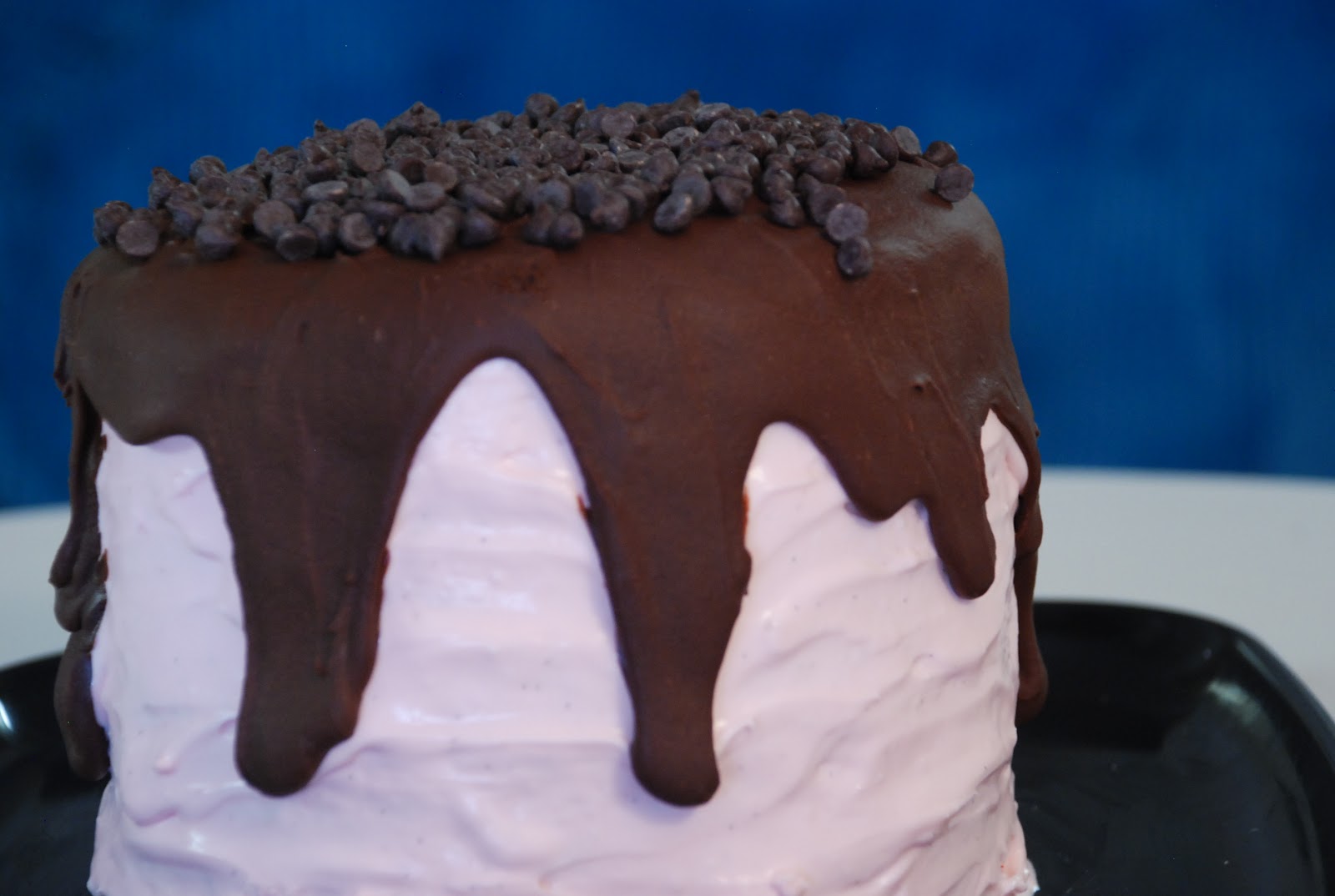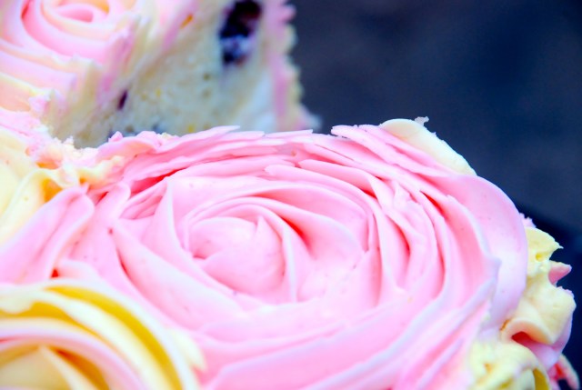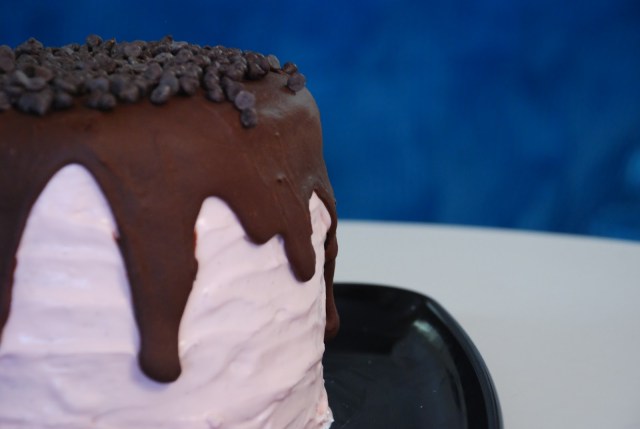 The pink frosting, by the way, is cream cheese. So easy to make and oh so delicious. I didn’t take any pictures of the insides because we were too busy eating it. It was my birthday, cut me some slack!
