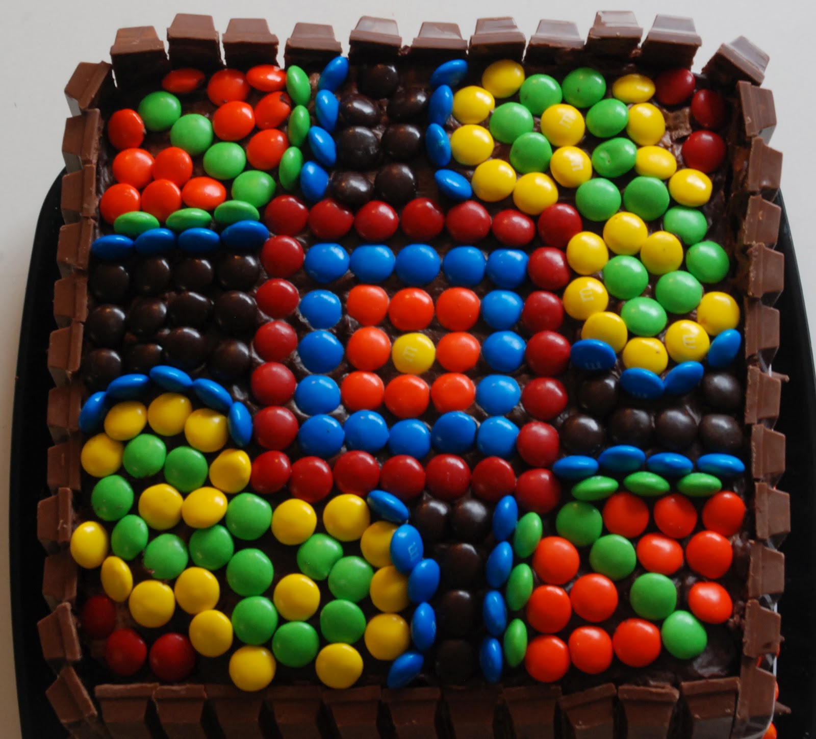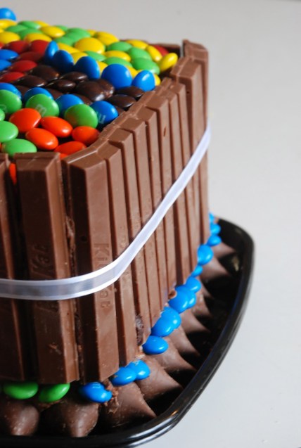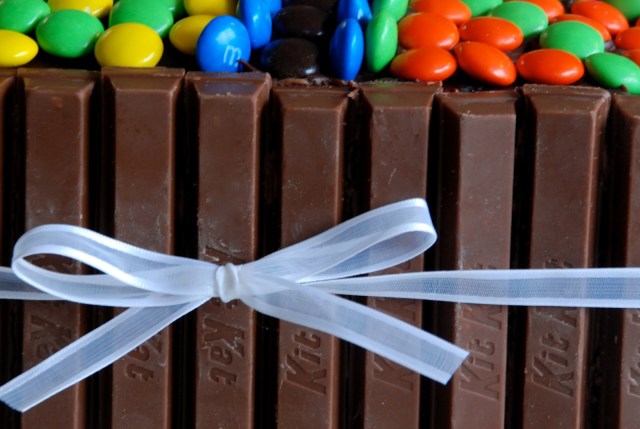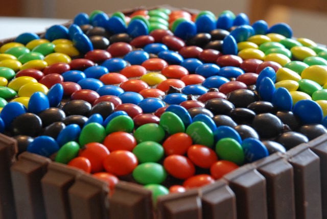 As you can see, it’s decorated in kit-kat bars, Hershey’s kisses, and colorful m&m’s.