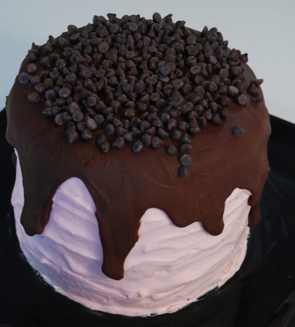 That’s a HUGE glop of chocolate ganache on top. Then I dumped some chocolate chips on it.