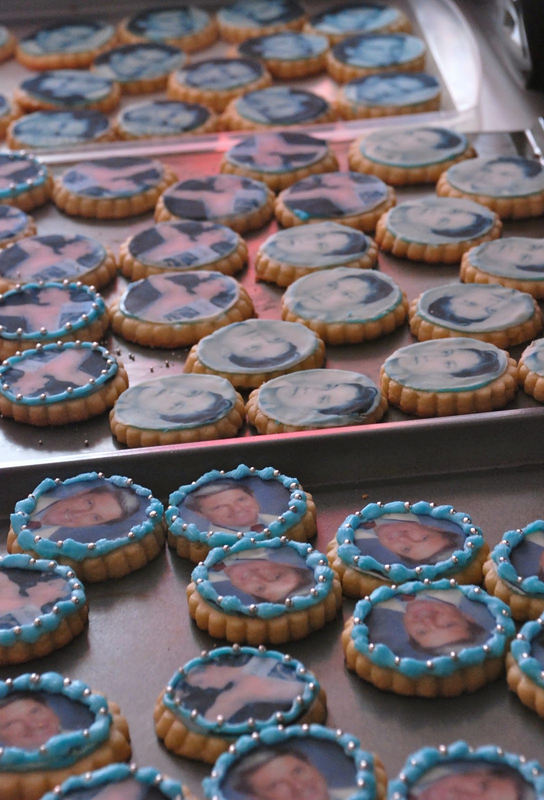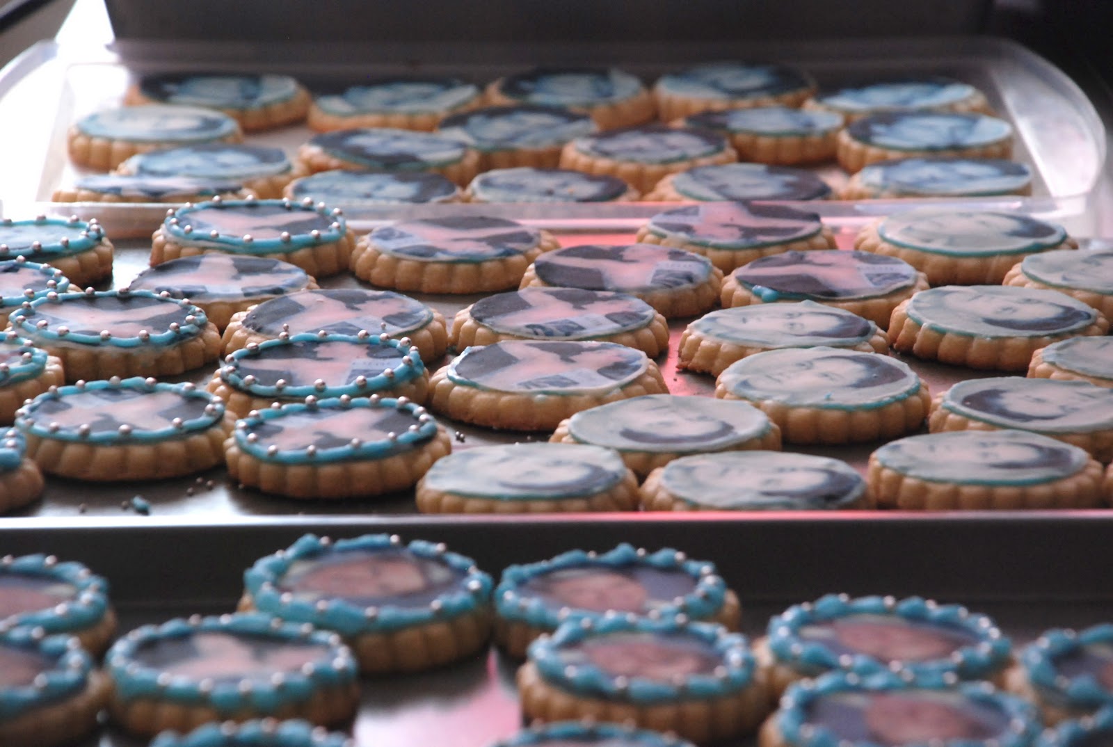 They were eat to make but incredibly impressive and so personal. I ordered edible icing paper with some very special pictures and they were so much fun to use. I made these in my dorm, so supplies. were tricky and they were a huge endeavor, especially because I made 100, but they came out beautifully.