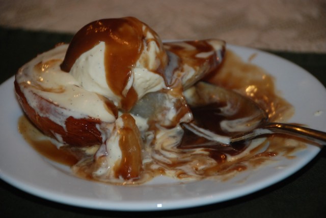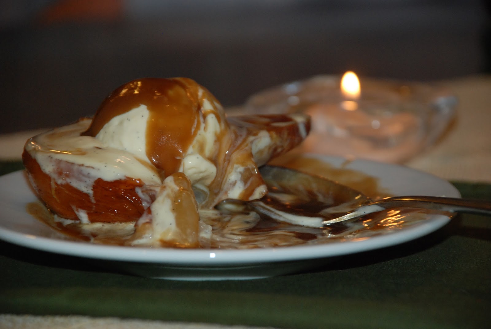 Roasted Pears with Vanilla Ice Cream (and caramel)