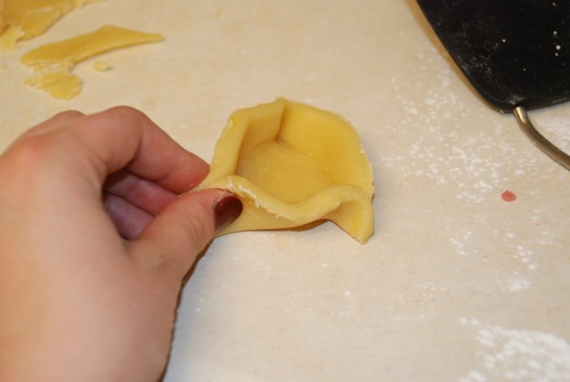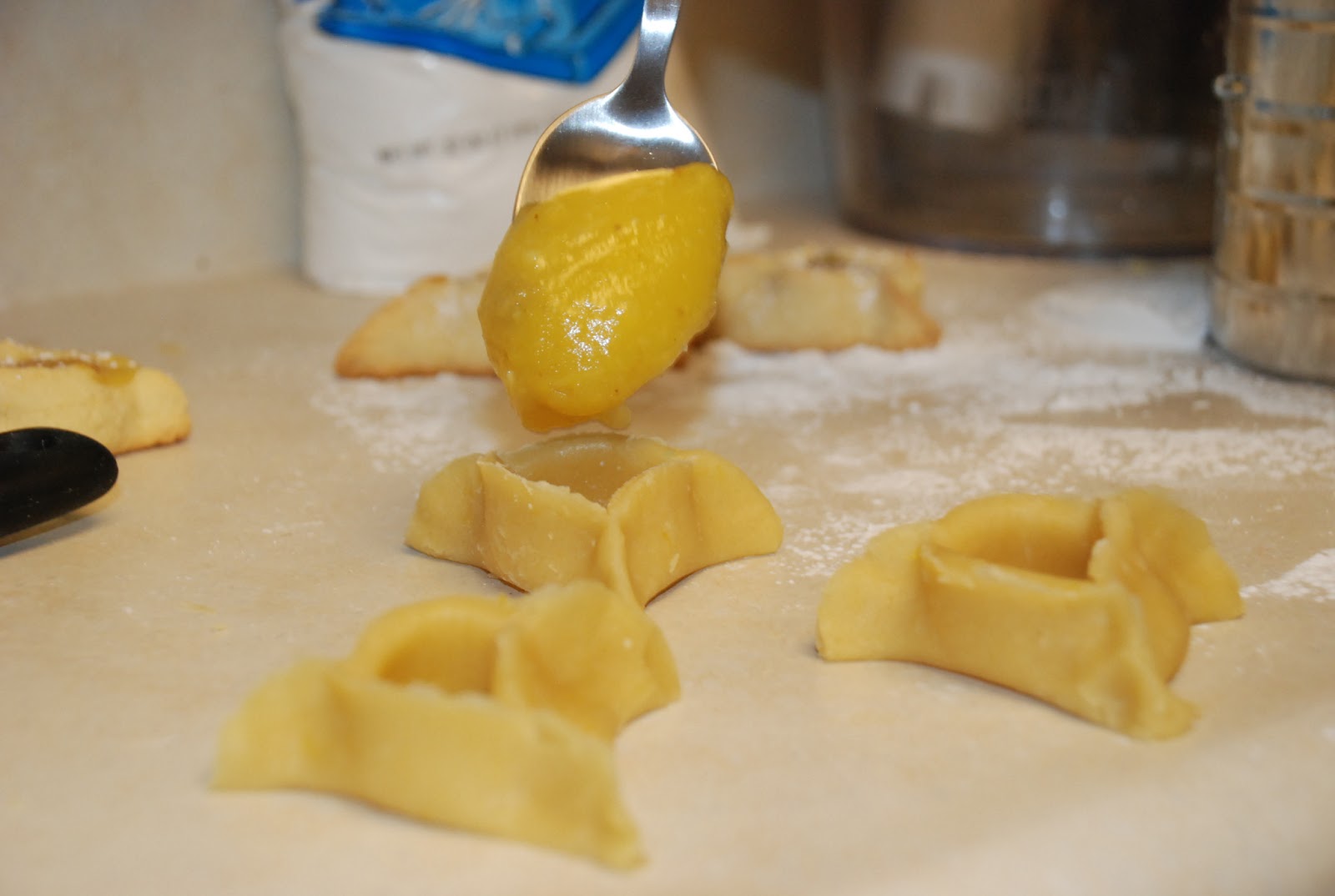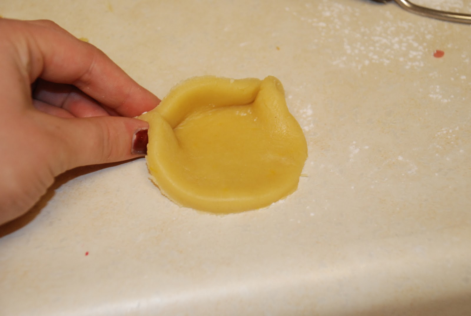 Because I was using a liquid filling, I didn’t fold the cookie around the filling. Instead, I folded the cookie first to make a little cup.