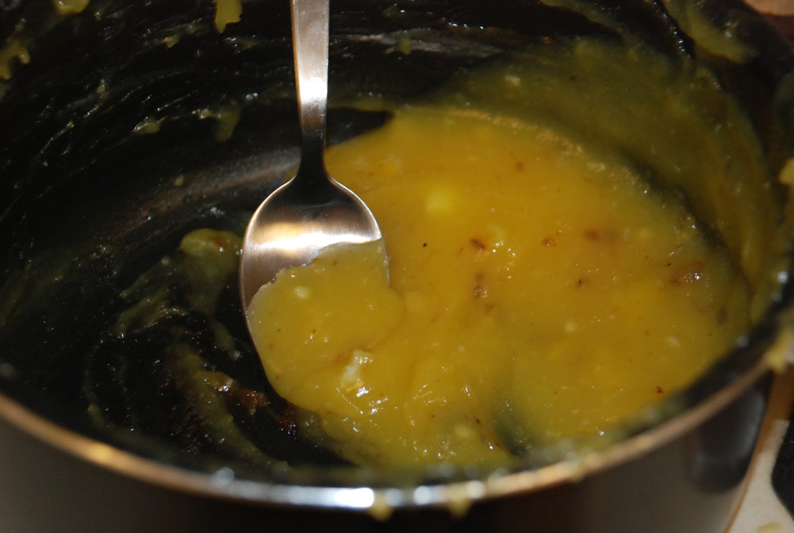 I made a standard lemon bar filling using eggs, flour, sugar, and lemon juice. I cooked it over the stove to thicken it before filling the cookies.