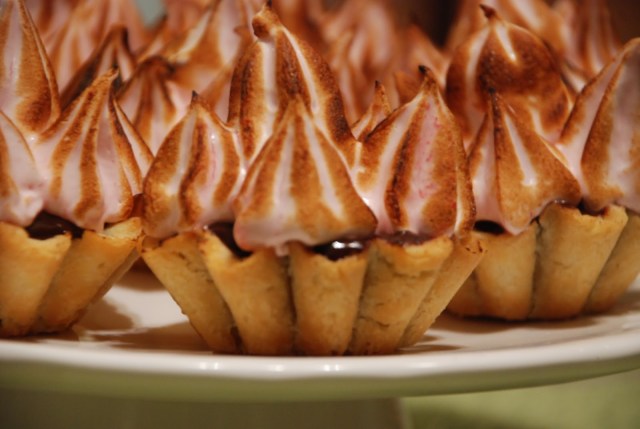 Okay. Maybe I went just a little overboard with this one. But I had to practice my lemon meringue tarts and as long as I was doing one little pie I might as well do two and just add cocoa to half the dough. And the ice cream was made ahead of time, then I just had to try out my new digital thermometer for tempering the chocolate. And don’t they all look so cute on the plate?