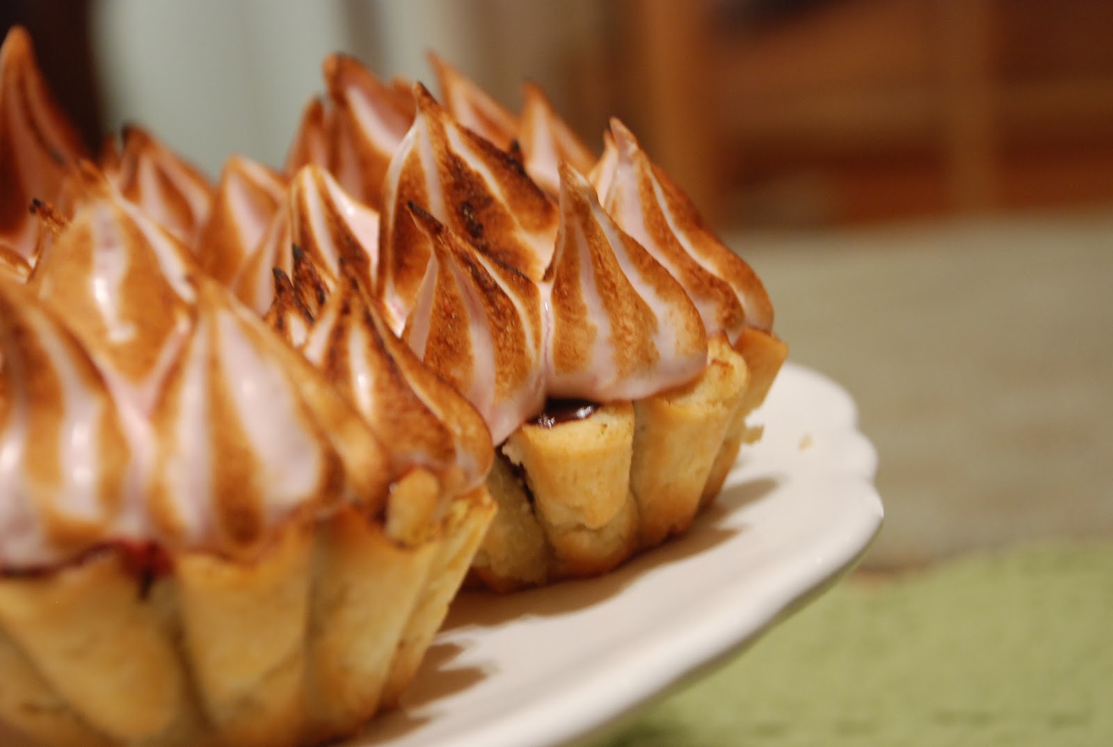 I made a little lemon meringue pie. I used my favorite pie crust recipe and replaced some flour with almond meal and ground pecans. I rolled out the crust, cut 3 inch circles, and bakes them in a mini cupcake pan. They were the perfect size.