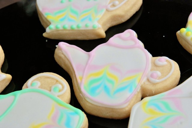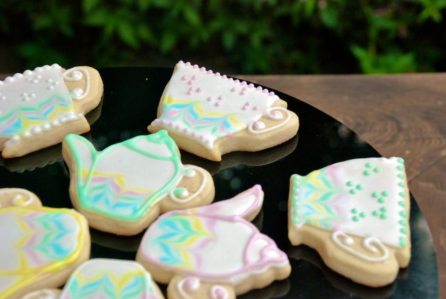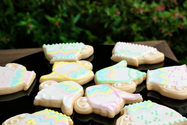 The next day, I flooded the centers of the cookies in white icing and while it was still wet, I carefully peeled off the decal I mad made and plopped it onto the wet icing, pressing gently.