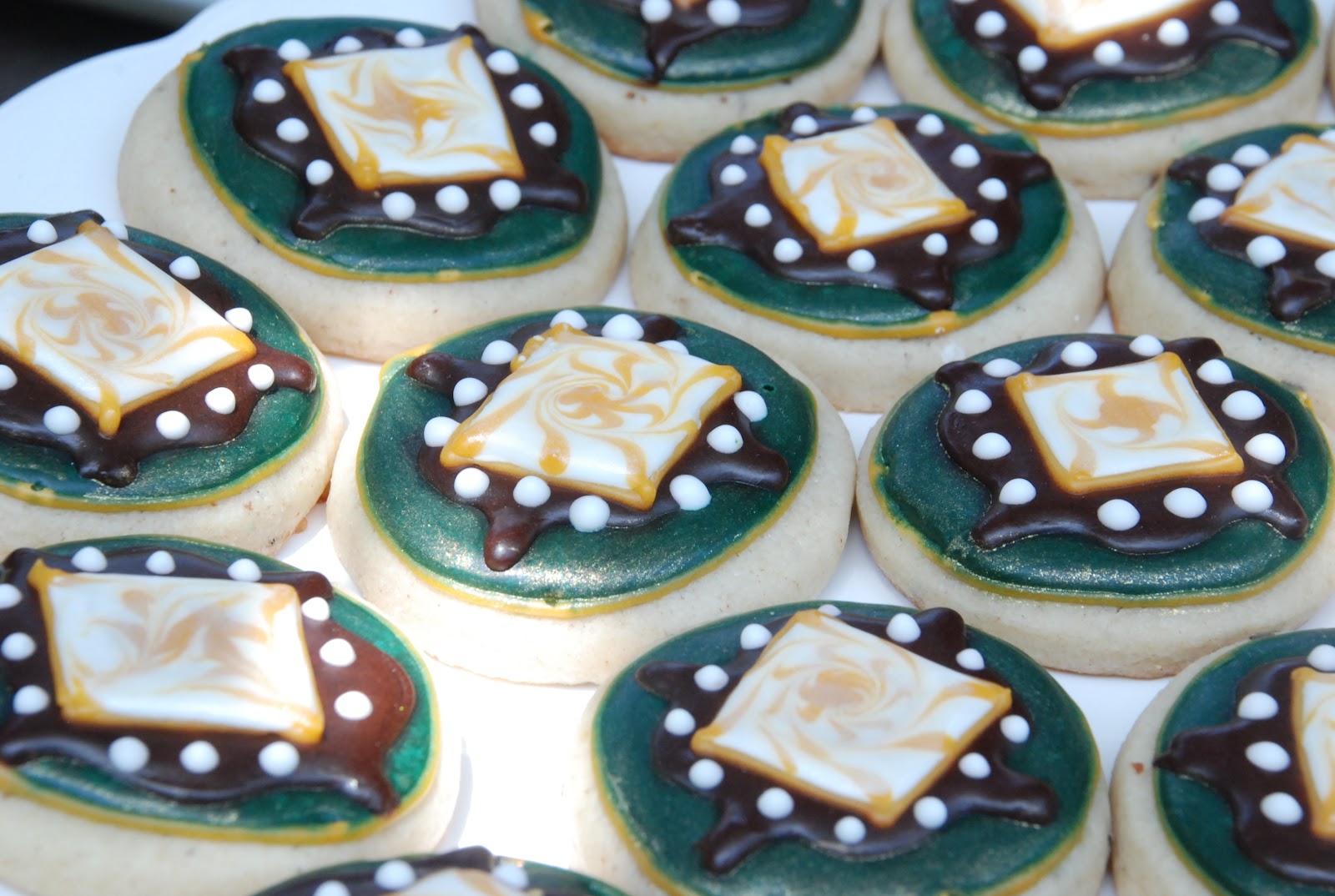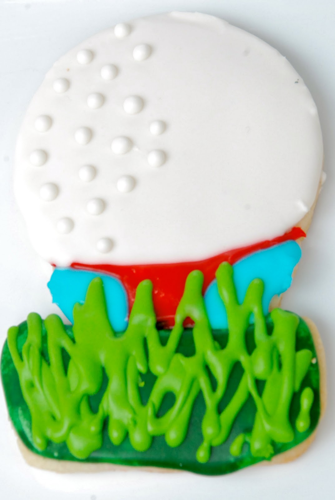 I love the bright, limited color palette for these golf cookies. The intensity of the colors, however, made them bleed a bit. I hope the colors last until Sunday!